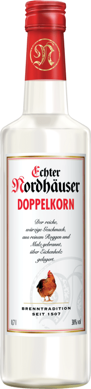 Wo andere Kornspirituosen aus Weizen gebrannt werden, da setzt Echter Nordhäuser ganz auf den kräftig würzigen Geschmack des Roggens. Seit 1507 hat die Kunst des Kornbrennens in Nordhausen Tradition und Echter Nordhäuser Doppelkorn wird hier nach dem überlieferten Reinheitsgebot nur aus reinem Roggen und Malz gebrannt. Die Lagerung über Eichenholz veredelt seinen typischen, roggenechten Geschmack.