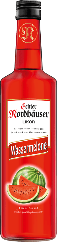 Jetzt neu im Online-Shop. Der frisch-fruchtige Geschmack von Wassermelonen macht den Likör Echter Nordhäuser Wassermelone zu einem ganz besonderen Geschmackserlebnis. Genießen Sie ihn als trendigen Aperitifpur oder in kreativen Cocktail und Longdrink-Varianten.